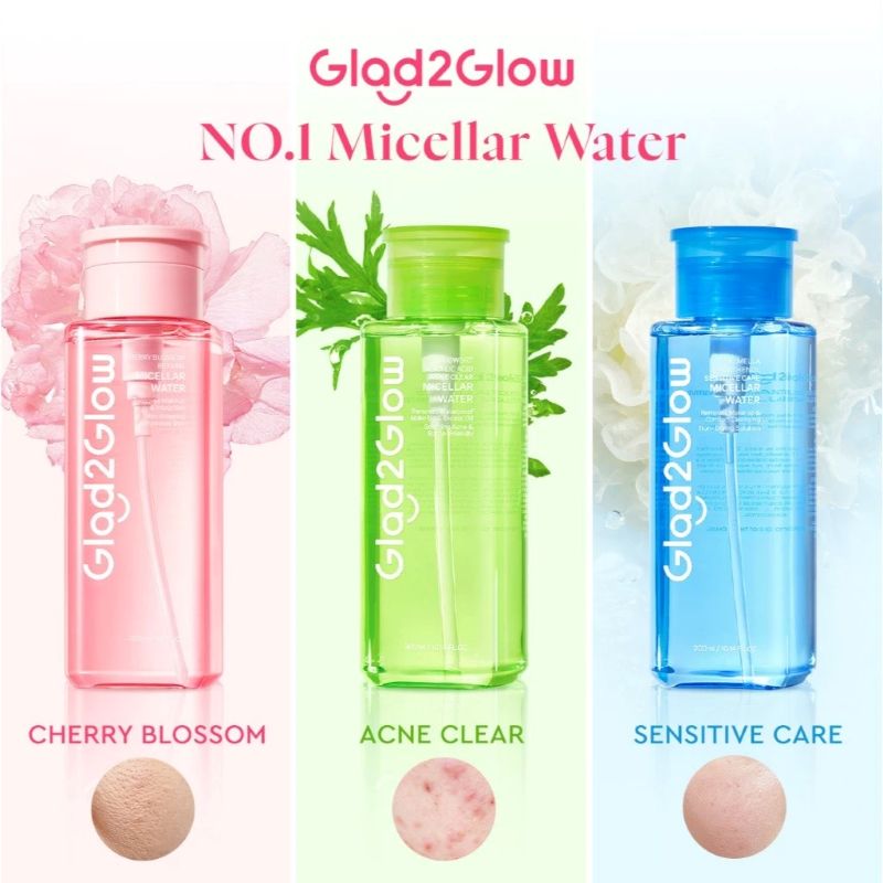 Gentle yet effective, this cherry blossom-infused micellar water from Glad2Glow removes waterproof makeup, excess oil, and dirt while calming sensitive and acne-prone skin β€” leaving it clean, fresh, and hydrated without residue.