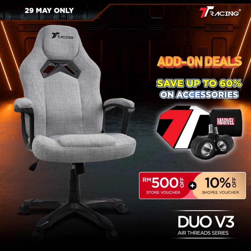 The Duo V4 is a modern entry-level gaming chair designed for comfort and support. It features a wider backrest, ergonomic seat with waterfall edge, and 70% elastic fabric for better cooling. Available in smooth PU leather or breathable Air Threads Fabric for all-day comfort.