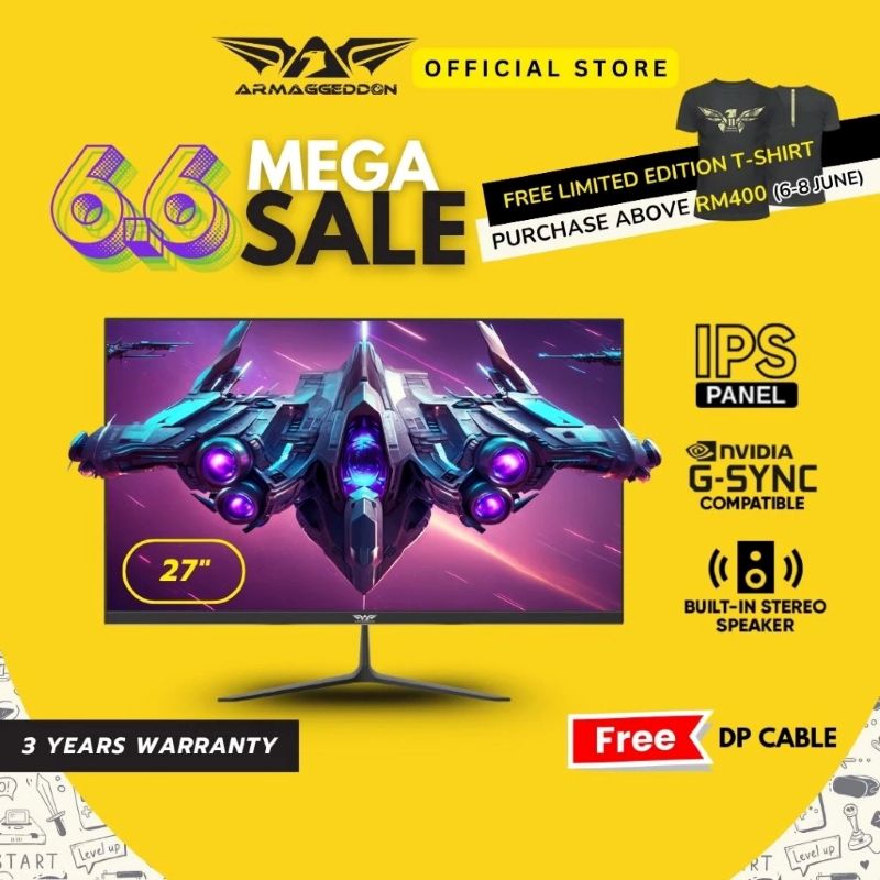 The Armaggeddon 27″ IPS Gaming Monitor features a sharp Full HD 1920×1080 resolution with vibrant colors and 99% sRGB coverage. It delivers smooth visuals with a 120Hz refresh rate and 5ms response time, ideal for gaming and multimedia.The matte, frameless screen reduces glare and enhances immersion, while Flicker-Free and Low Blue Light technologies protect your eyes during long sessions. Compatible with AMD FreeSync and NVIDIA G-Sync, it ensures tear-free gameplay. With built-in stereo speakers, VESA 100x100mm mount support, and adjustable tilt from -5° to 15°, this monitor combines performance and comfort for gamers and everyday users alike