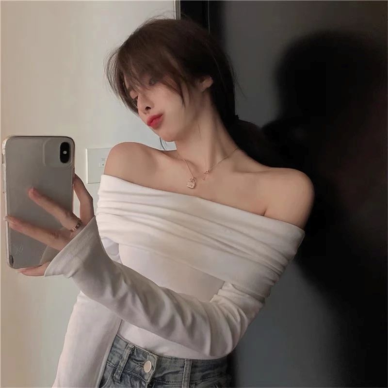 Turn up the heat with this sexy off-shoulder crop top, featuring a flattering boat neckline and snug long sleeves. The chic silhouette highlights your collarbones and waist.