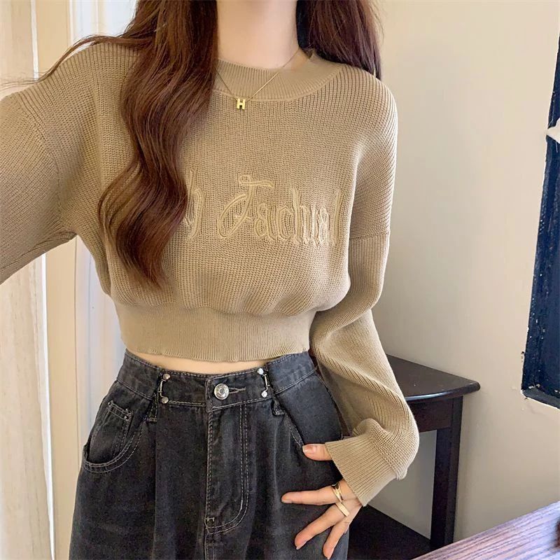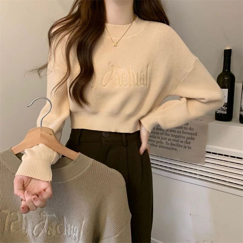 Stay effortlessly cool with this Hong Kong-style cropped sweater featuring bold embroidered lettering.