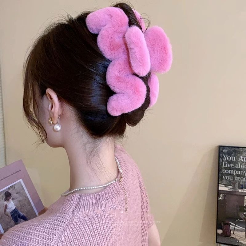 9. Plush Shark Pink Hair Clips for Women | Large Wave Design