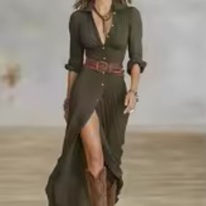 Stay sophisticated with this V-neck belted pleated dress. Its bohemian style and side slit give you both grace and freedom of movement, making it great for autumn occasions.