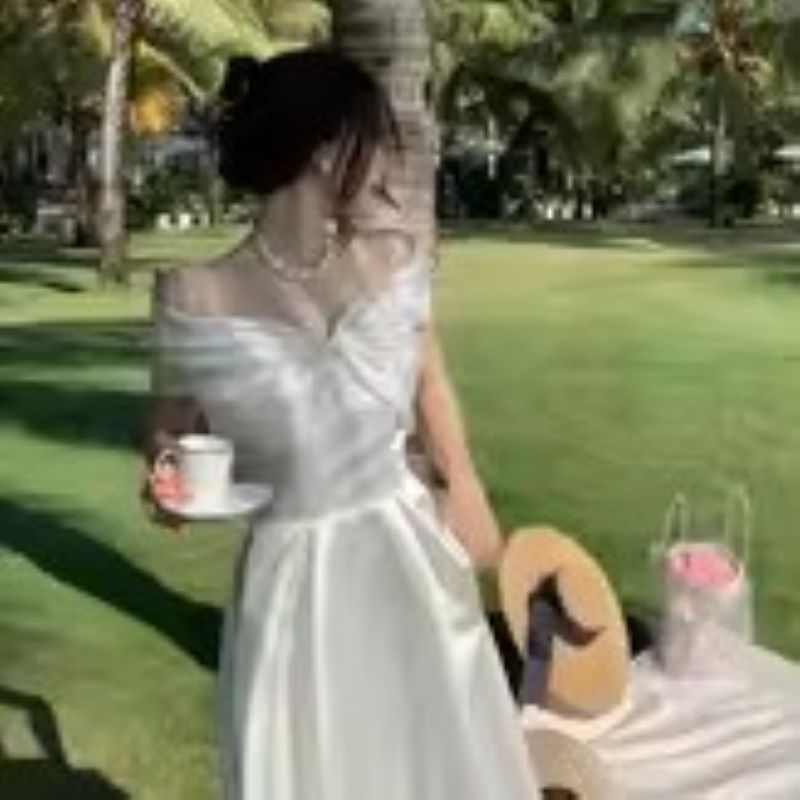 4. Horetong Bow Slash Neck Dress