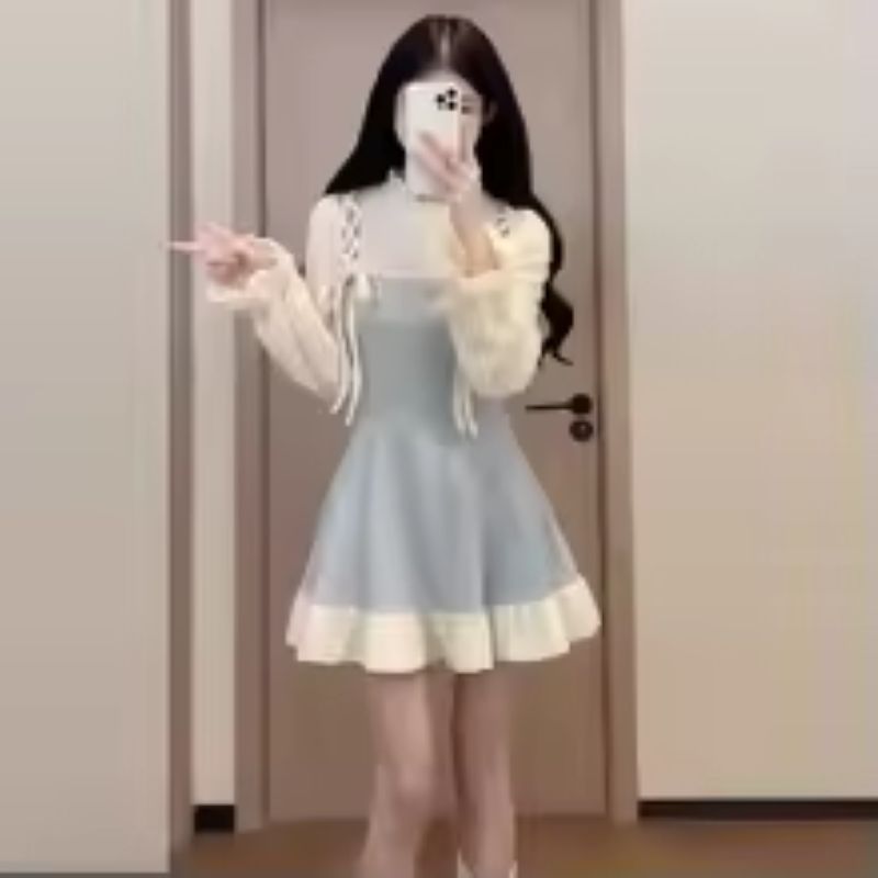 This slim-fit color block mini dress is the perfect blend of casual and chic. With its flattering waist design and long sleeves, it’s a versatile pick for autumn and winter wear.