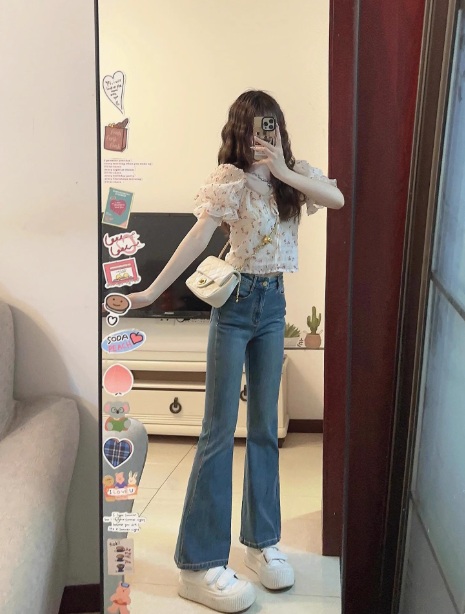 Mix sweet with casual! A soft, feminine top with cute details like bows or lace pairs perfectly with classic denim jeans. Great for a laid-back yet stylish outfit you can wear anytime.