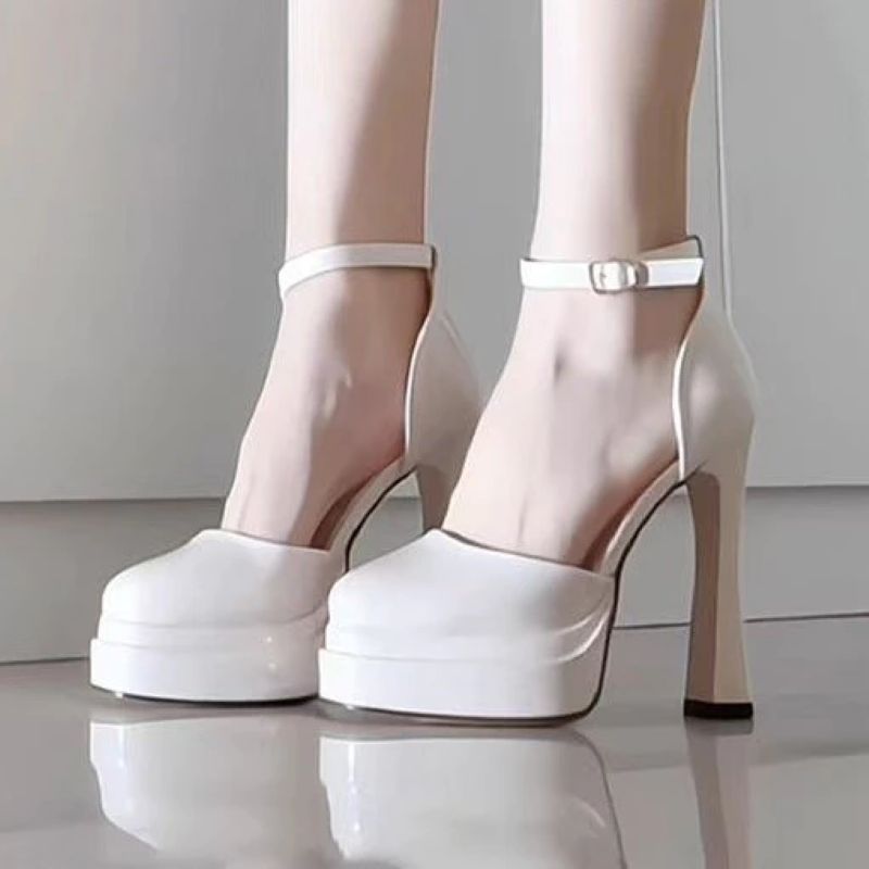 Elevate your everyday style with these solid color thick heel shoes. Designed with a stable platform and one-line buckle closure, they offer both comfort and sophistication. Made with a durable rubber sole and soft PU insole, these shoes provide great support for long wear.