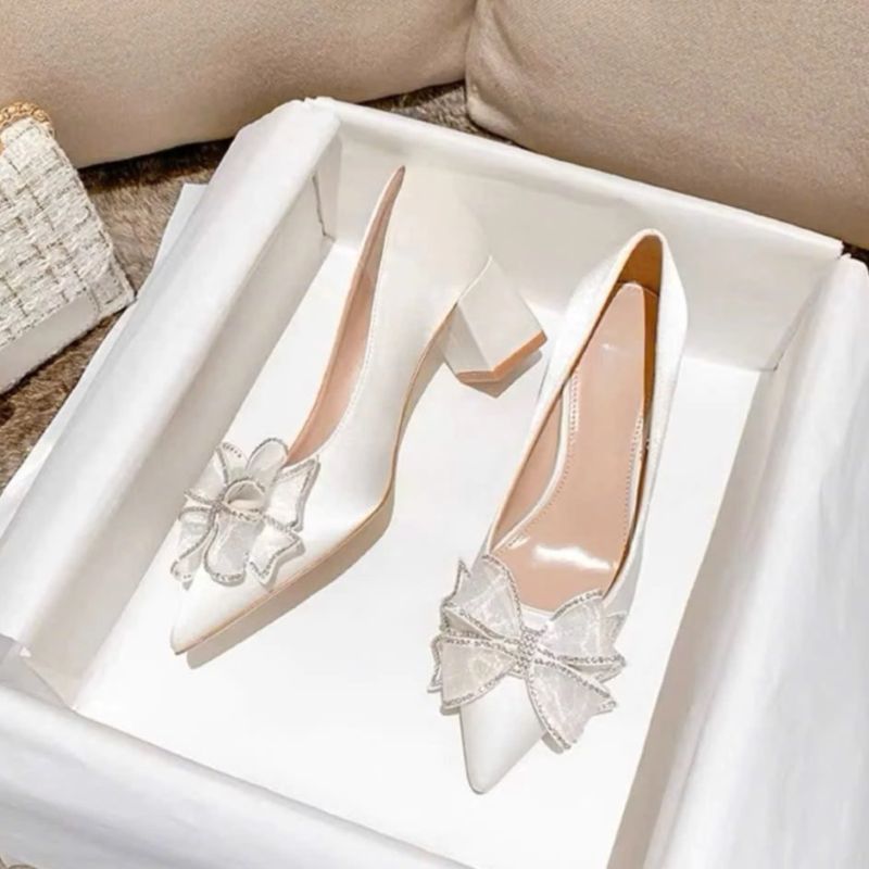Step into elegance with these 5-inch square heel shoes, featuring sparkling stone bows for a touch of glamour. Designed for both style and stability, they’re perfect for parties, weddings, or any special occasion where you want to stand tall and shine.