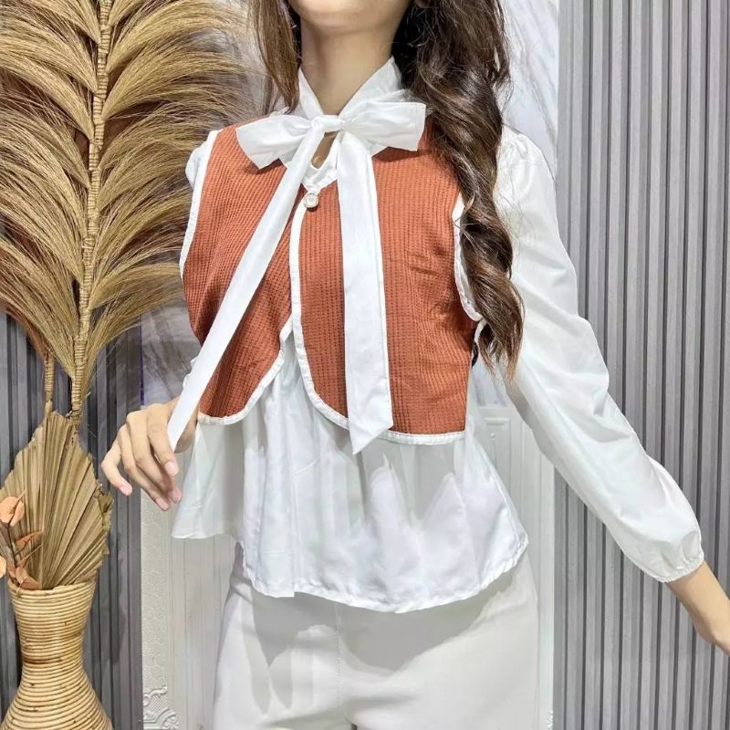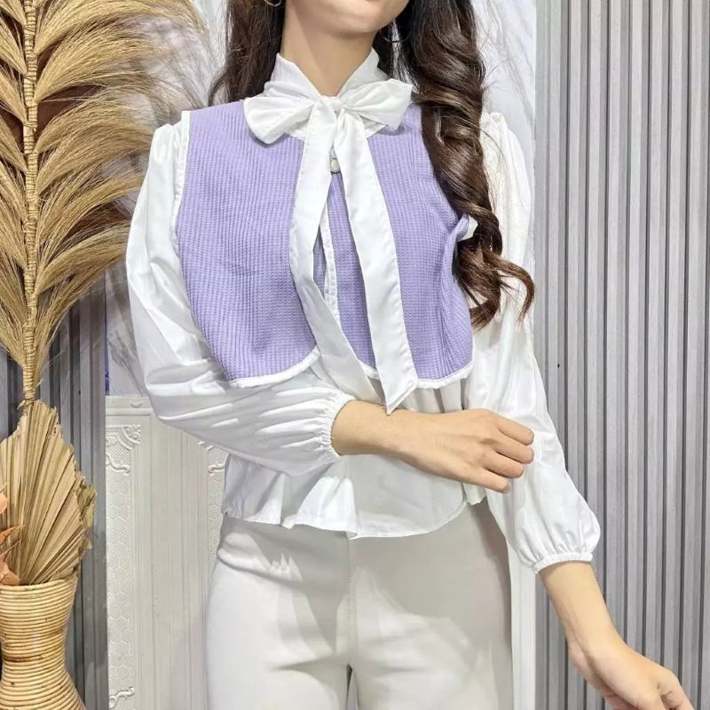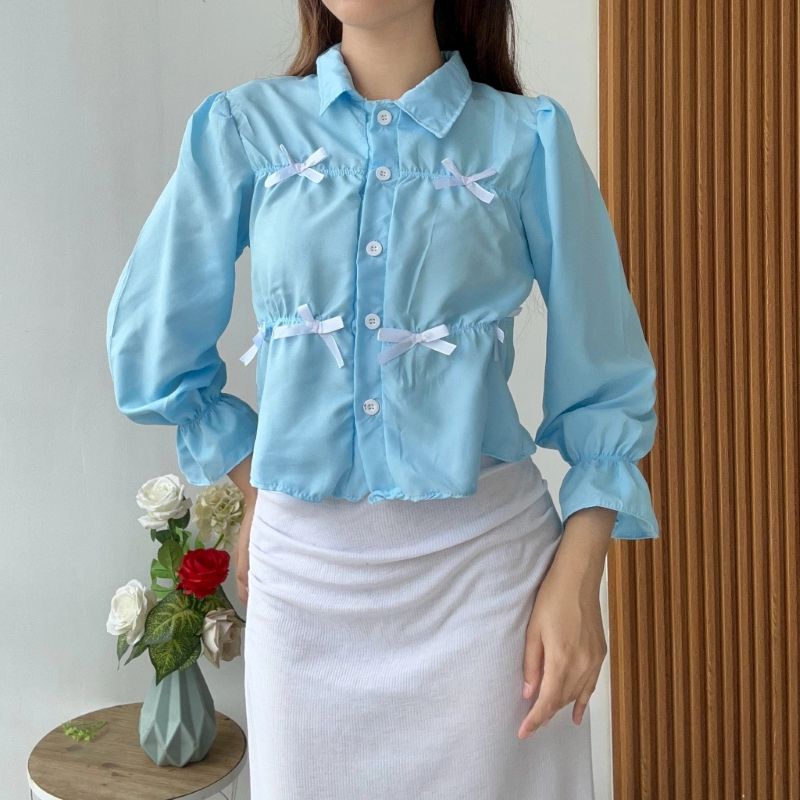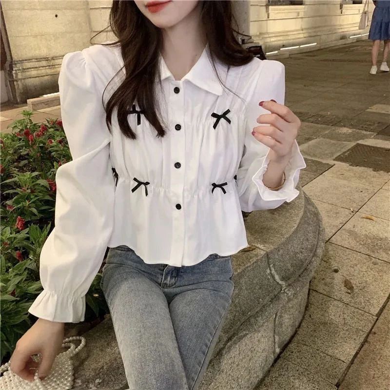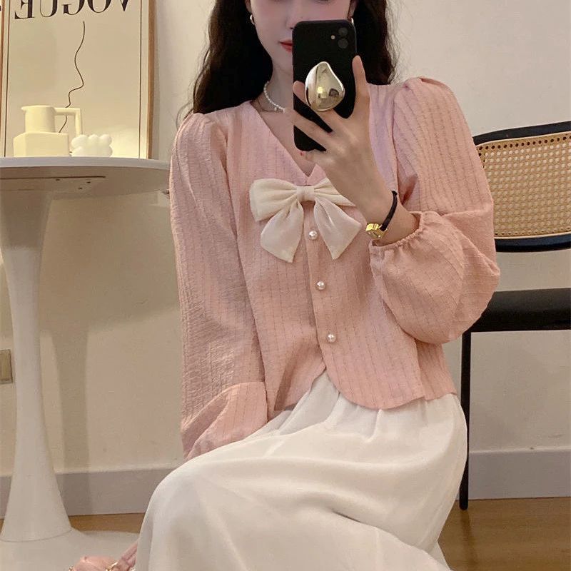 Add a sweet and feminine touch to your outfit with this Korean-style ribbon blouse.
